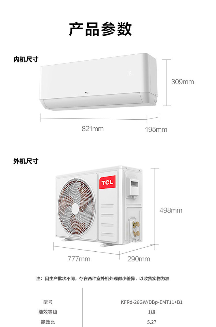 TCL空调 1P变频 冷暖 新一级能效 KFRd-26GW/DBp-EMT11+B1